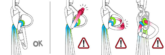 On apportera un soin particulier au choix du mousqueton acceuillant le demi-cabestan : un mousqueton large et symétrique conviendra parfaitement.